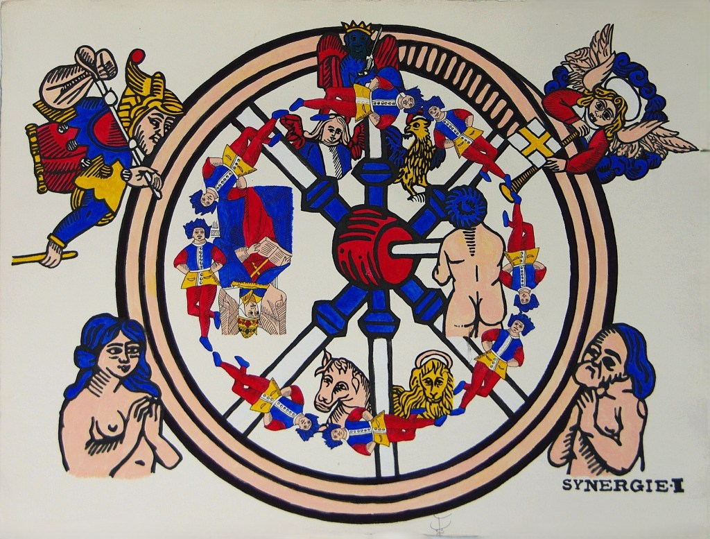 C’est la mise en roue dans le mouvement des cycles de l’univers de cet infiniment petit qu’est l’être humain, porteur d’une utopie, d’un ‘’où est-ce ?’’ auquel il répond par la transmutation des opposés en complémentaires : d’un mal faire un bien, accomplir un encore inaccompli jusqu’à reconnaître son masculin, le vivre et épouser son féminin, le faire être.