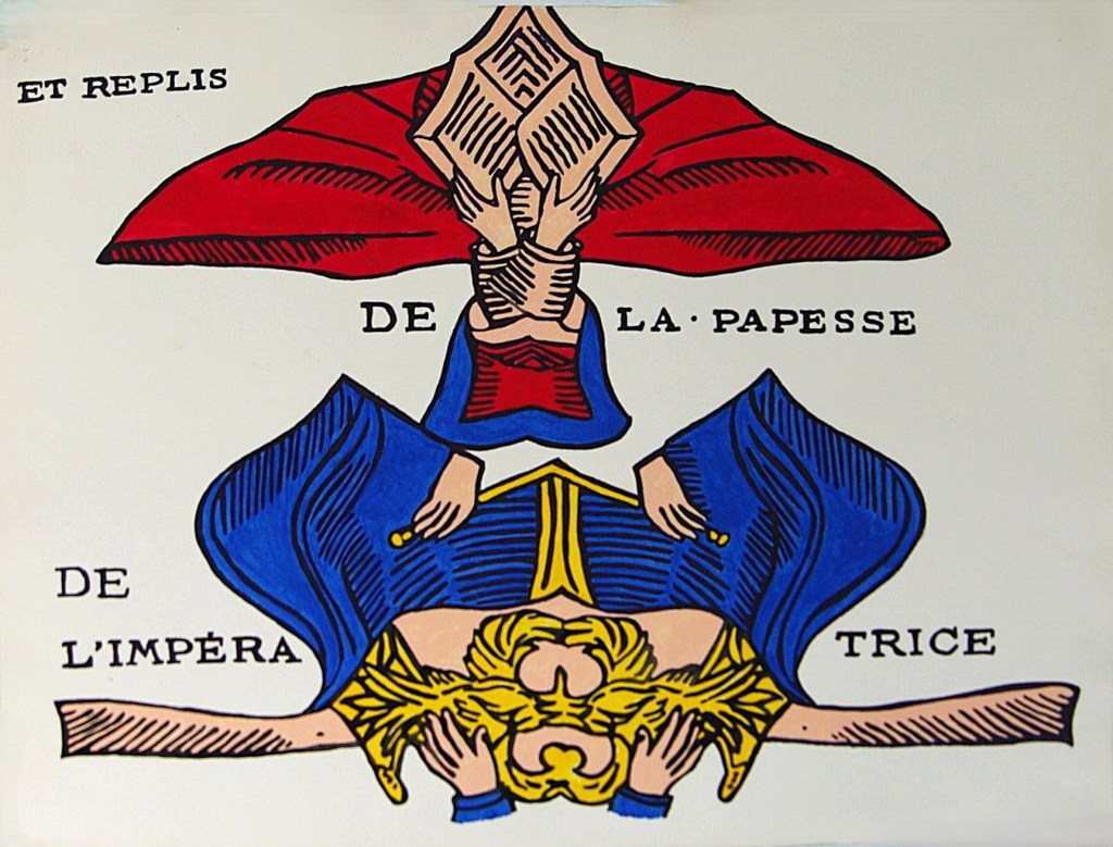 Noces cosmiques** en haut Papesse et ange bras dessus bras dessous*, en bas Eros + Caritas + Agapé des trois en un*, corps et esprit** unis dans l’âme née, le compte y est **, les énergies de vie sont androgynes.