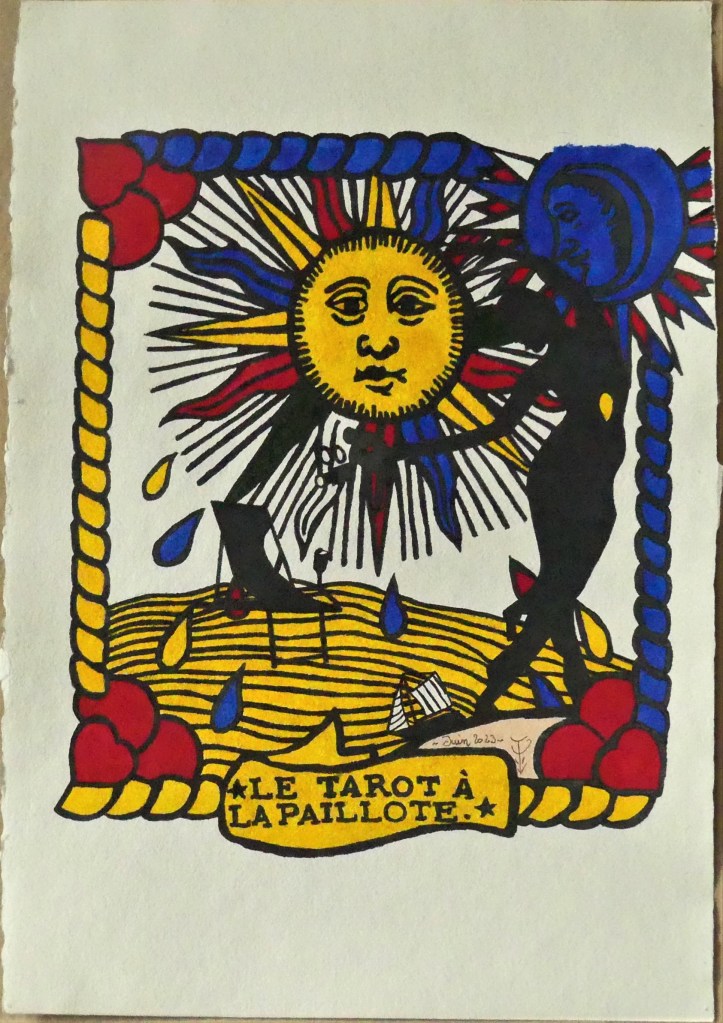 Tour à tour magicien (I), troubadour (VI), dompteur (XI), funambule* (XII) cracheur de feu de la Saint Jean* (XVI) et tout le reste des arcanes, il est le Mat, ce trait debout sur l’horizon qui dit notre verticalité les pieds sur terre et la tête tournée vers les étoiles.