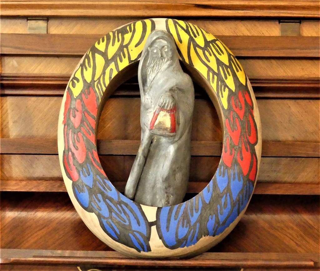 Pour ma part, j’ai juste offert le gîte, sous la forme de cette mandorle ouverte, à cet Hermite compagnon possible du St Jacques qui surgit de la mer sur une plage de Galice. F.Tarche.