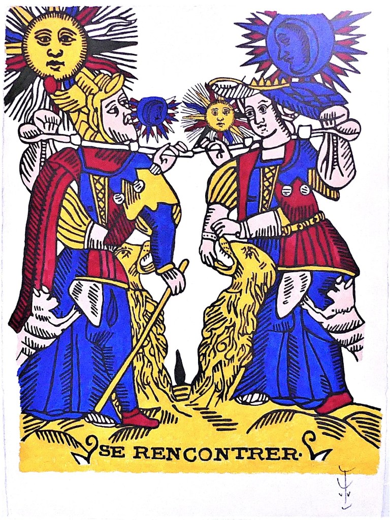 Se rencontrer = 154// La fête de l’esprit, noces alchimiques, Lune+le Soleil, huitième jour, lier + délier + allier, voyageur de l’âme, polyphonies.